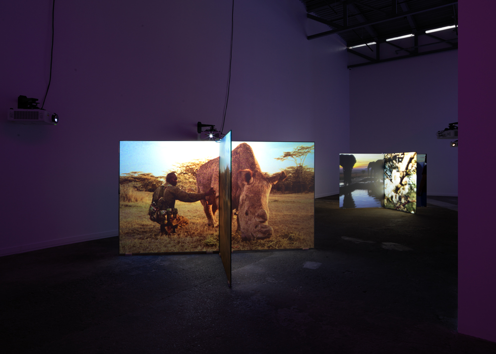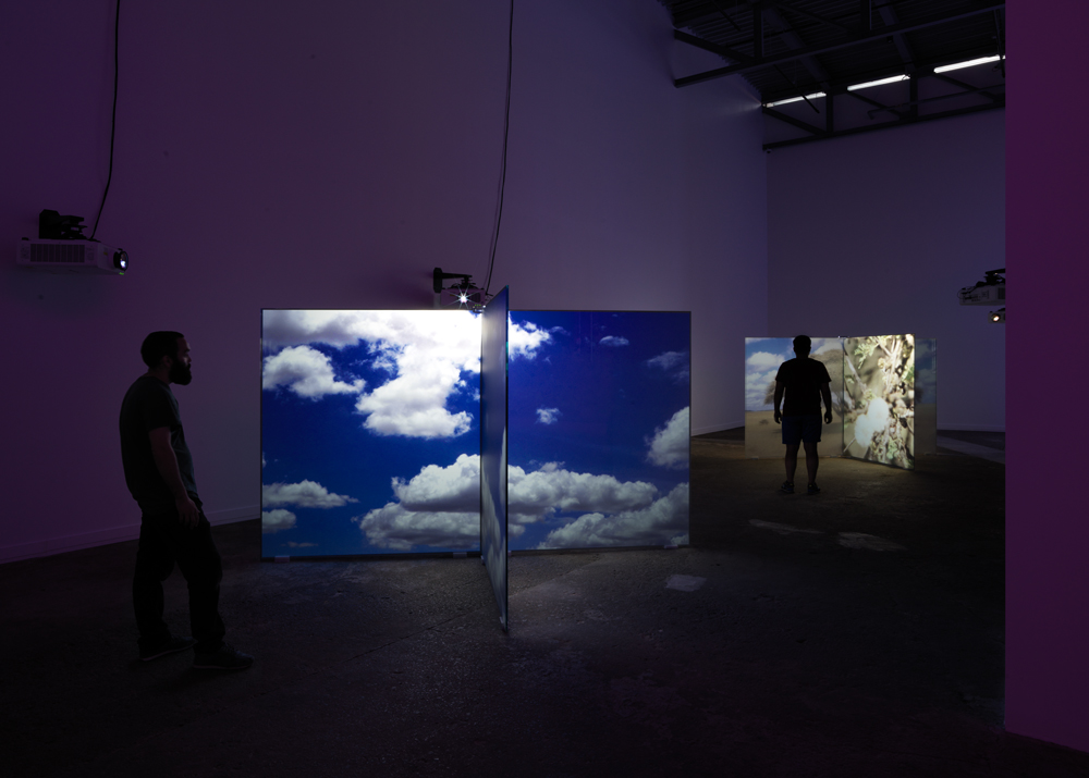 As Radical as Reality, 2017Two (2) custom screens, two (2) video projectors, two (2) media players Installation view, The Mistake Room, Los Angeles 2017