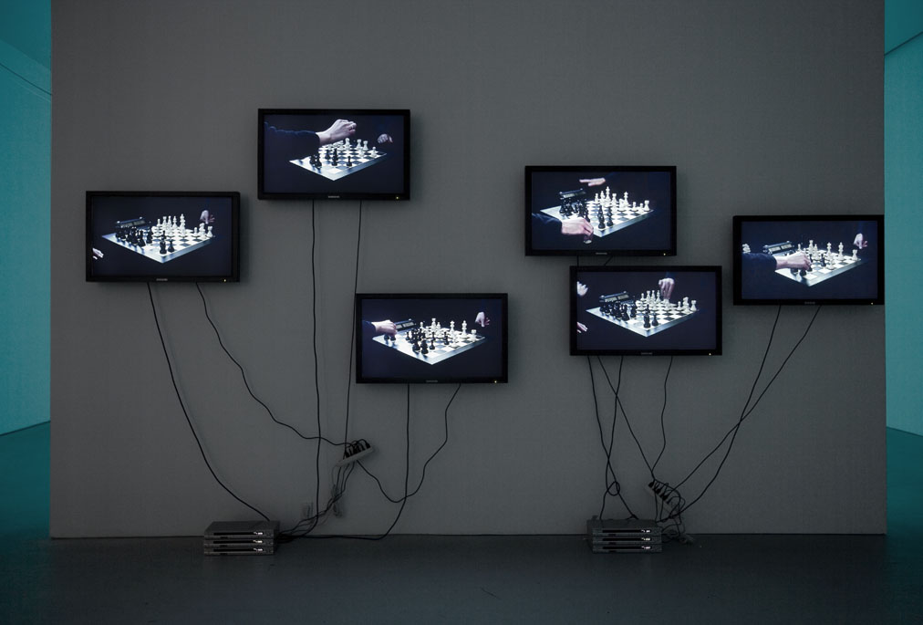 Blitz, 2008Six (6) video monitors, six (6) DVD players and six (6) DVDsDimensions variableInstallation View, David Zwirner, New York, 2008