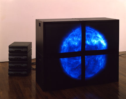 Blue Sun Videowall, 2000Four (4) video monitors, four (4) DVDs, four (4) DVD players, one (1) synchronizerDimensions variable