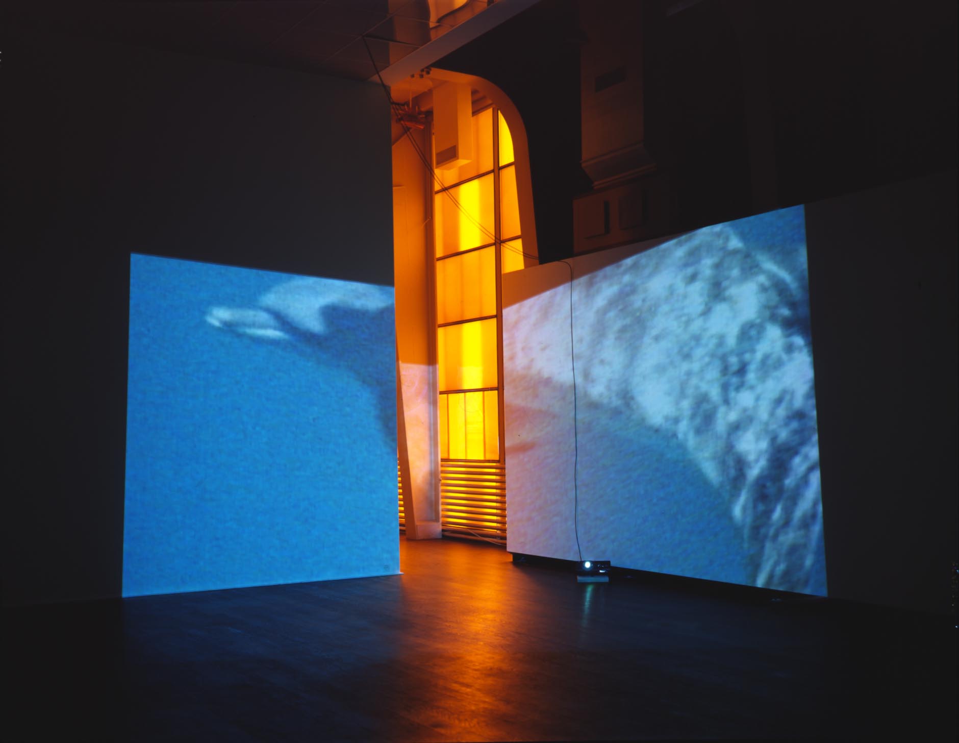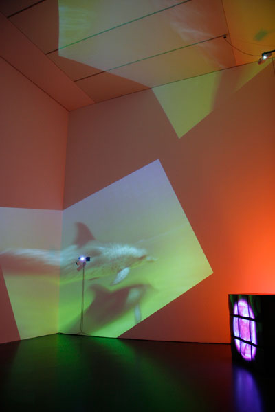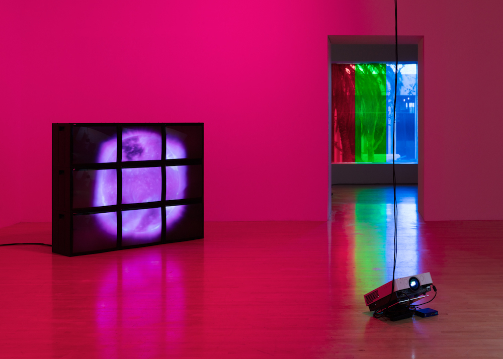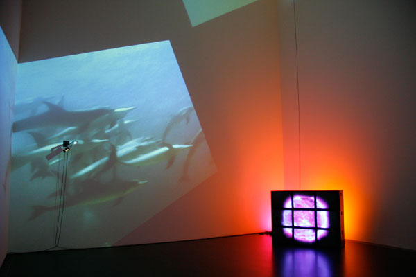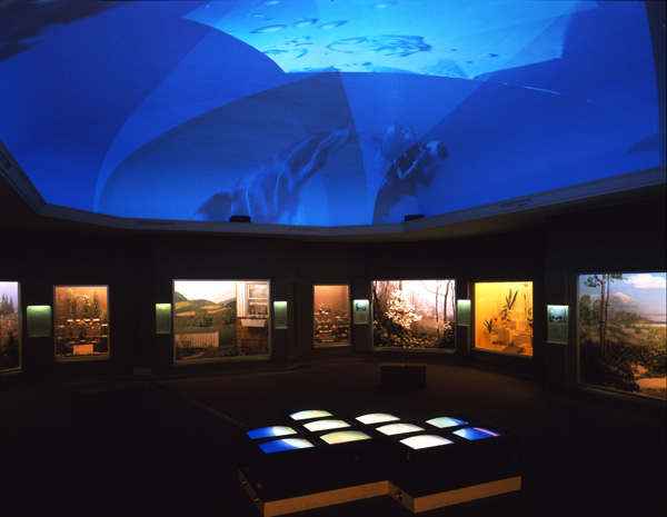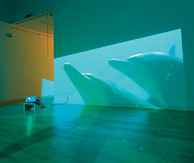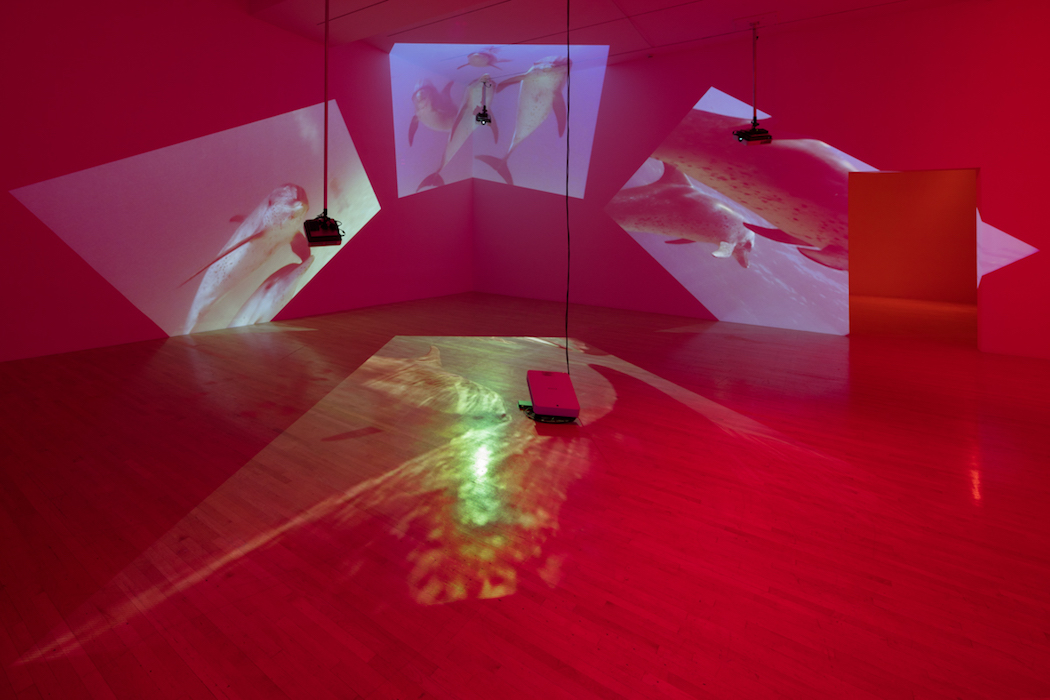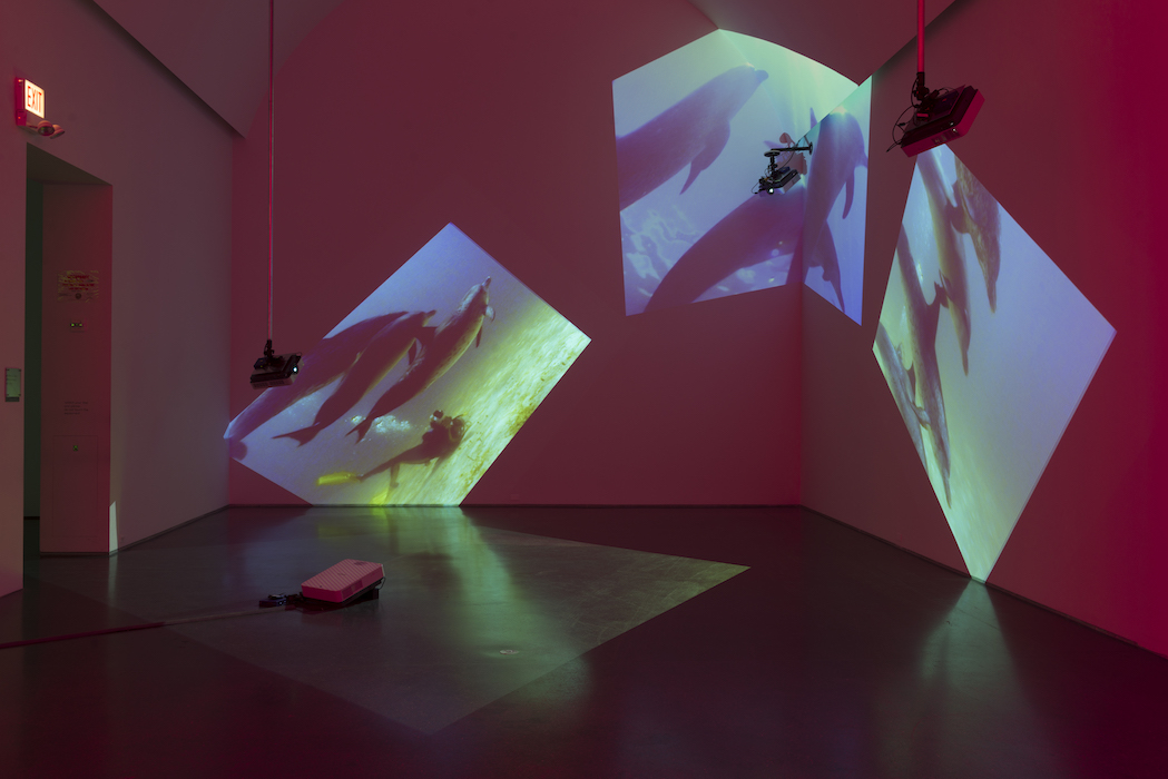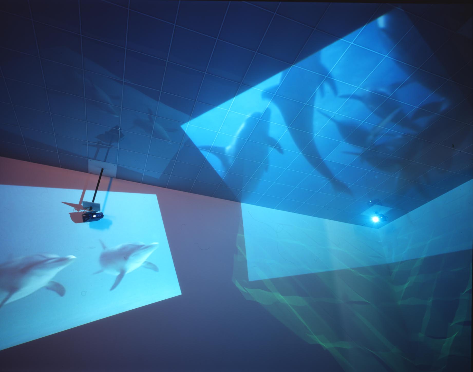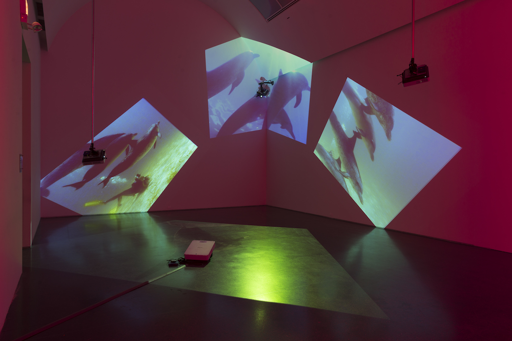 Delphine, 1999 Four (4) video projectors, five (5) media players, nine (9) Video monitors, Lee filters and existing architecture Dimensions Variable Installation view, Los Angeles County Museum of Art, Los Angeles, California, 2015 Photo by Fredrik Nilsen
