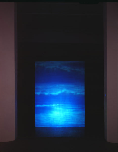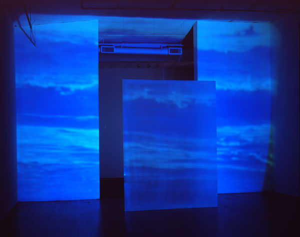 Dogs and Other Philosophers, 19911 Video Projector, 1 DVD, 1 Video mixer, Plexiglass, Existing architectureInstallation view, Dorothy Goldeen Gallery, Santa Monica, CA, 1991