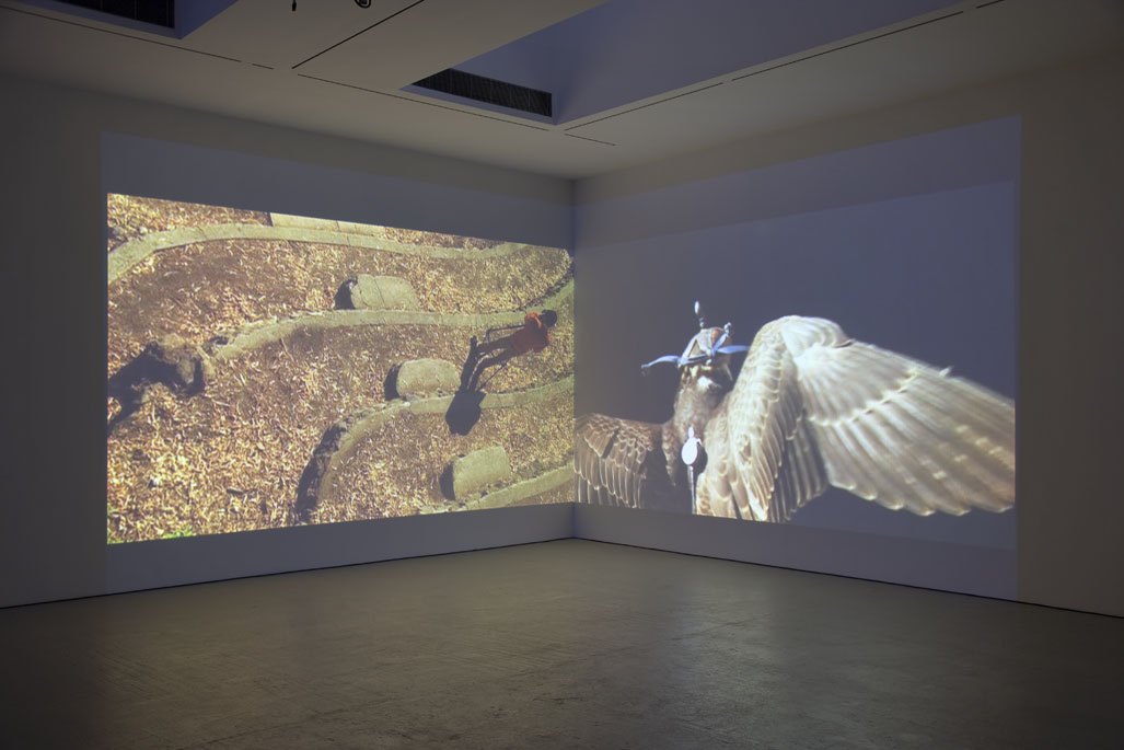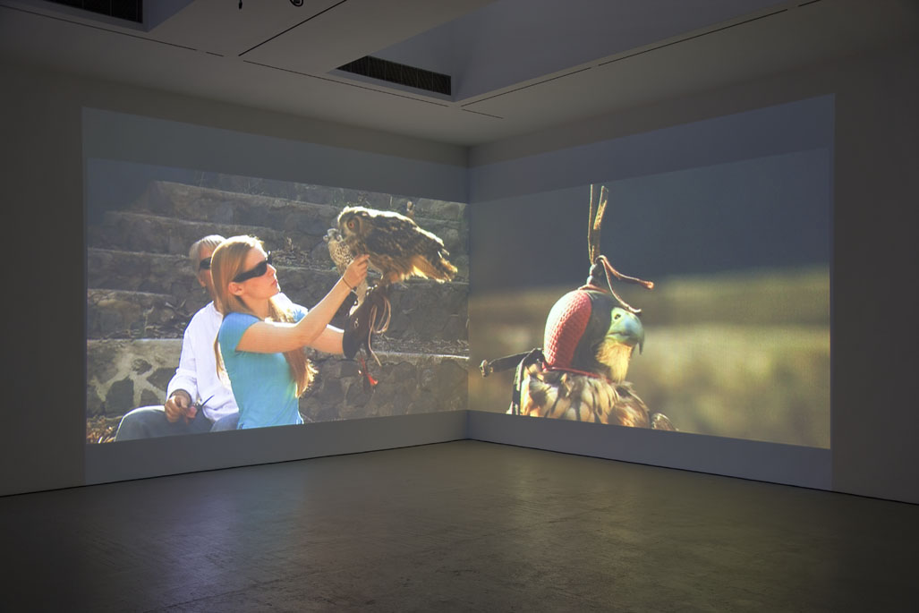 Horus, 2008Two (2) video projectors, two (2) DVD players, two (2) DVDs, one (1) synchronizer and one (1) Source Four lightDimensions variableInstallation View, David Zwirner, New York, 2008