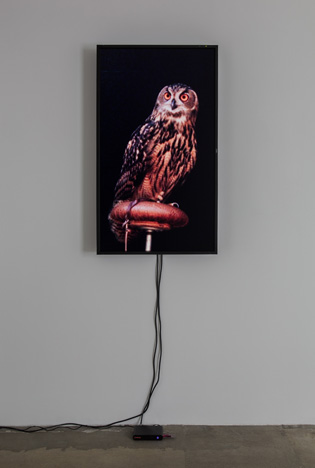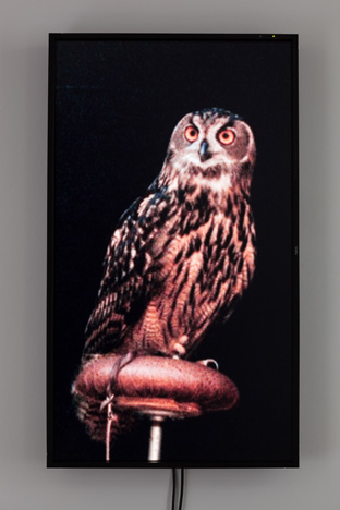 Male Eurasian Eagle Owl (Big Bird), 20121 Flat panel monitor, 1 DVD, 1 DVD playerDimensions variablePhoto by Fredrik Nilsen