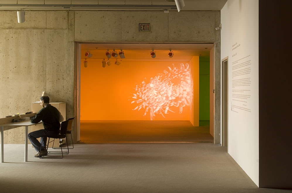 Orange Room (Wallflowers), 2001Three (3) video projectors, three (3) DVD players, three (3) DVDs, Lee filters and existing architectureDimensions variableInstallation view, Sammlung, Falckenberg, Phoenix Kulturstiftung, Hamburg, Germany, 2007