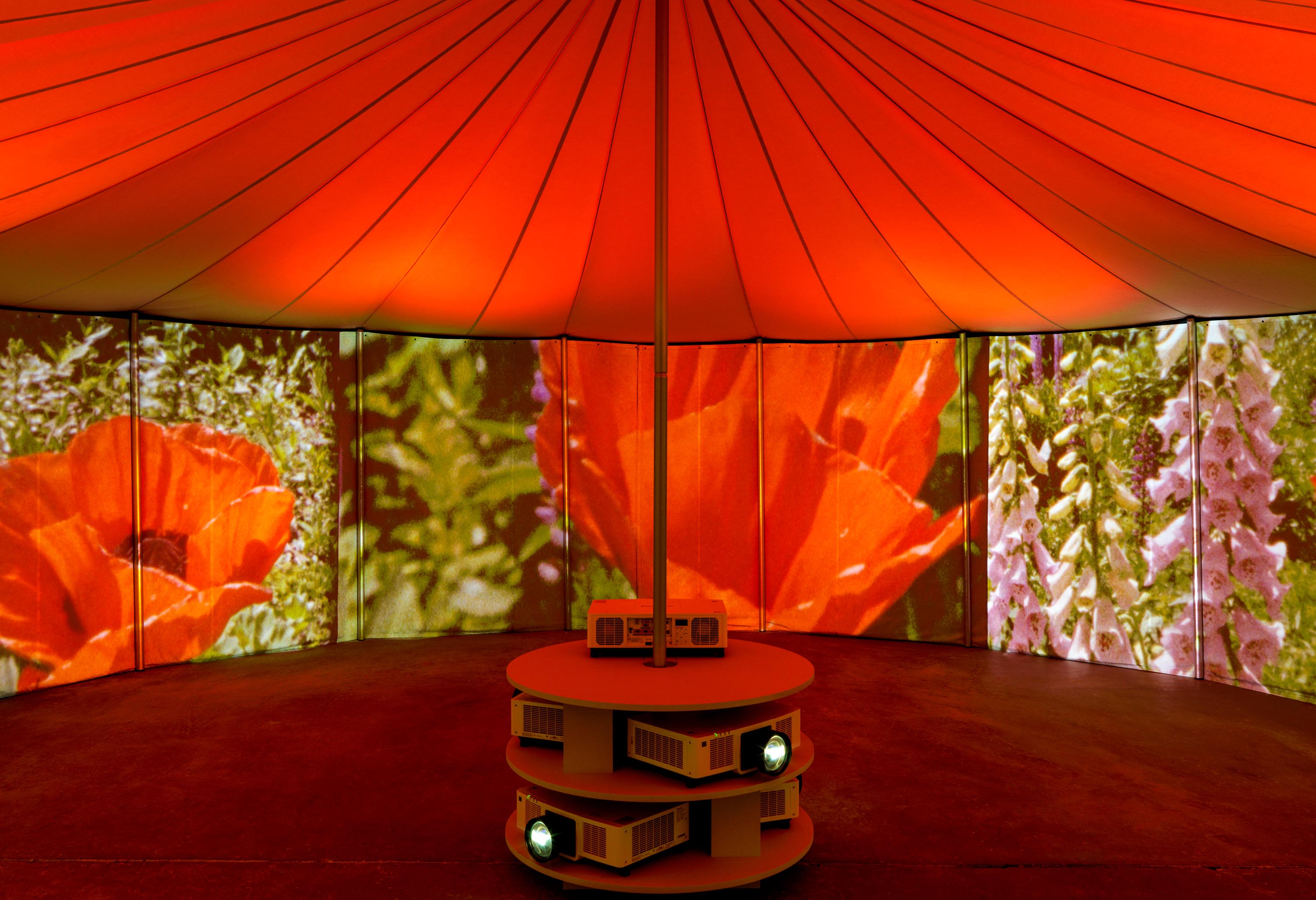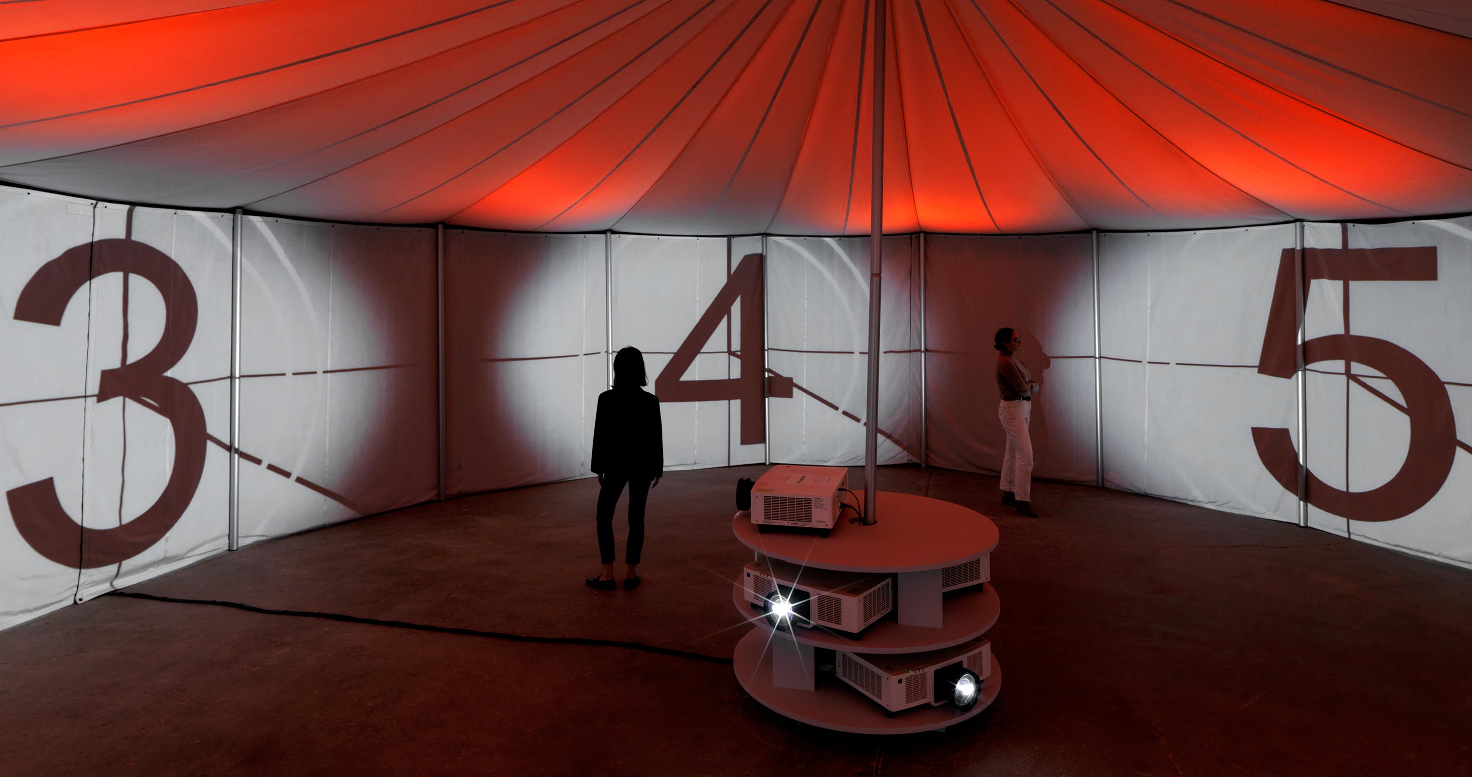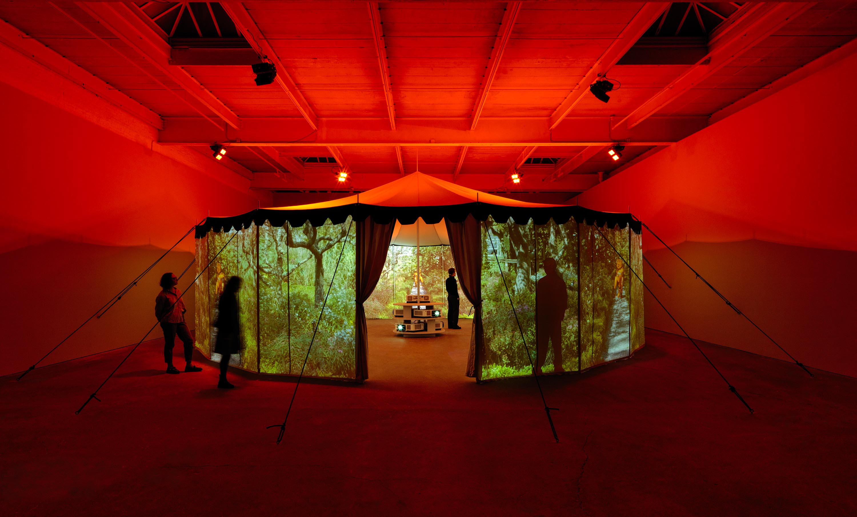 Practical Effects, 2022One (1) tent, five (5) projectors, five (5) media players, and six (6) DMX lightsPhoto by Kerry McFateInstallation view David Zwirner, New York, NY
