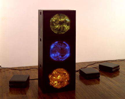 Red Magenta Yellow Suns, 2000Three (3) video monitors, three (3) DVD players, three (3) DVDsDimensions variable