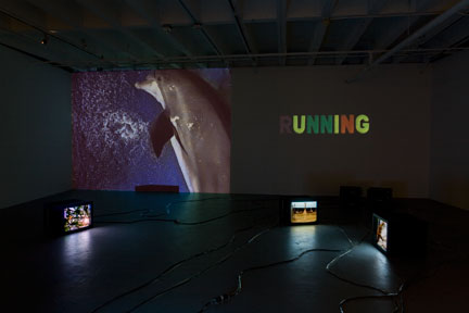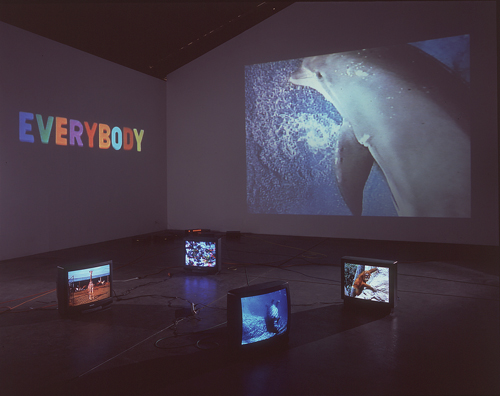 The Caucus Race, 19982 Video Projectors, 4 Video monitors, 6 DVD players, 6 DVDs, 1 Synchronizers and Lee FiltersInstallation view, Museum of Contemporary Art Los Angeles, 2008