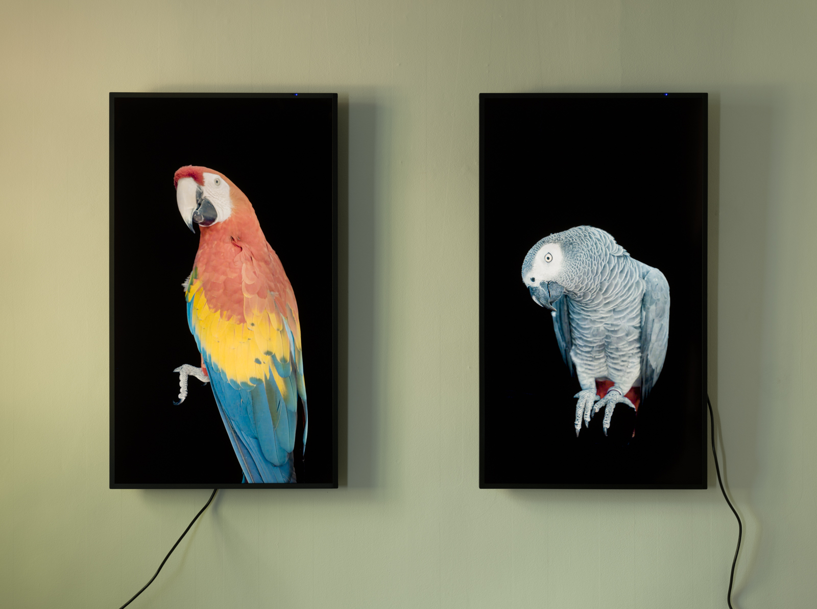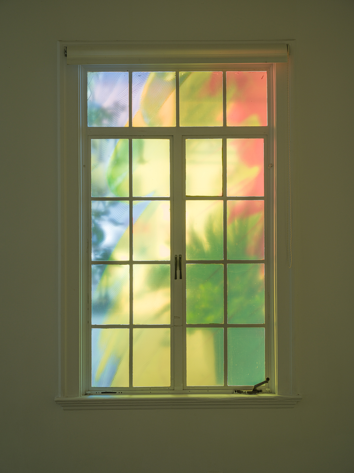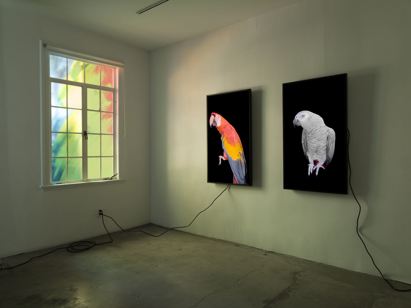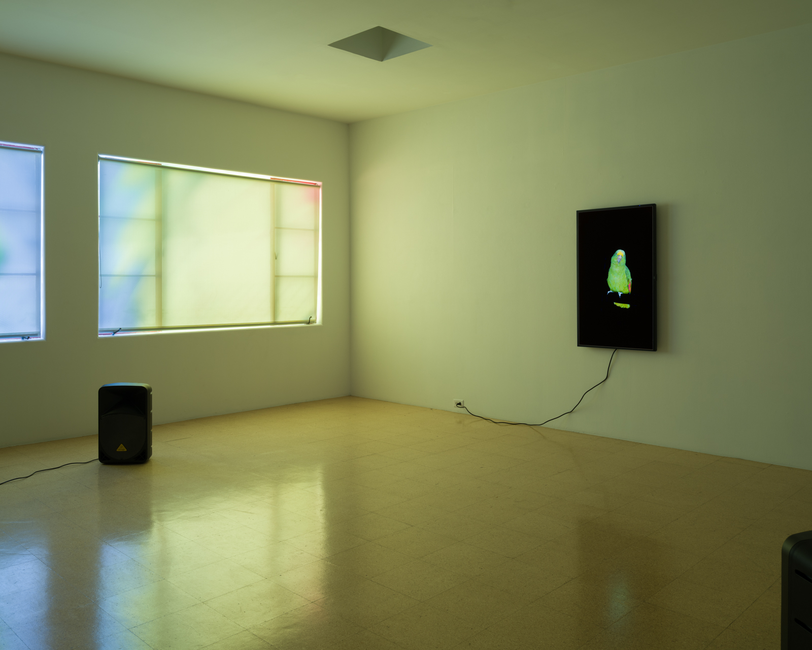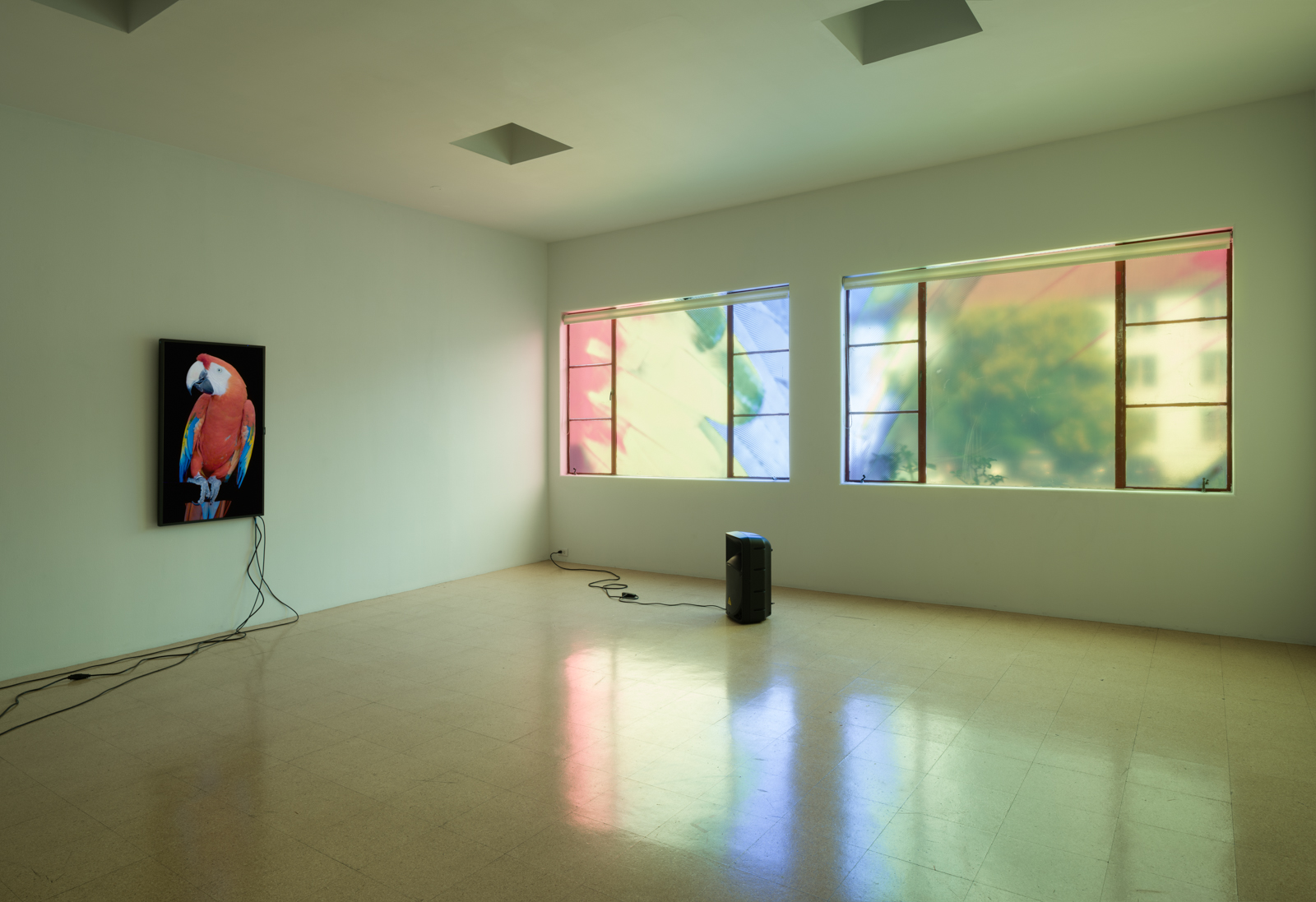The Conversation, 2021Four (4) flat panel monitors, four (4) speakers, window film and existing architecturePhoto by Fredrik NilsenInstallation view 1301PE, Los Angeles, CA