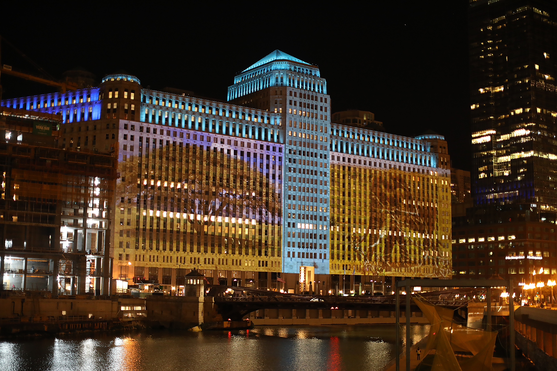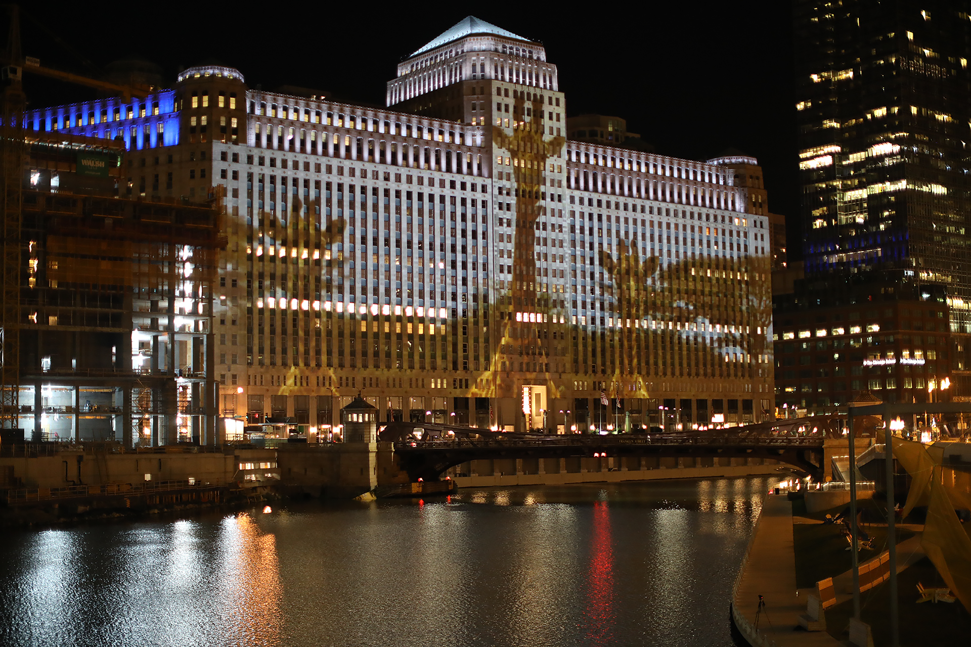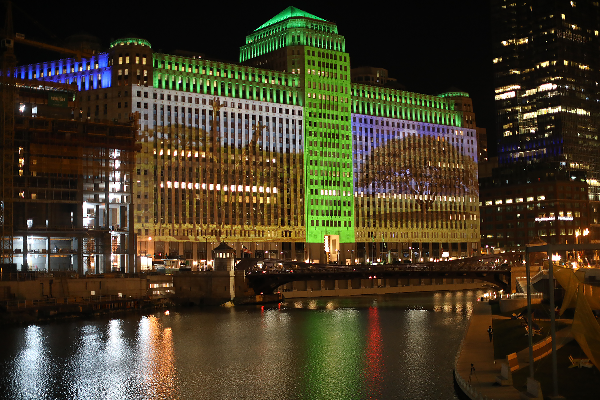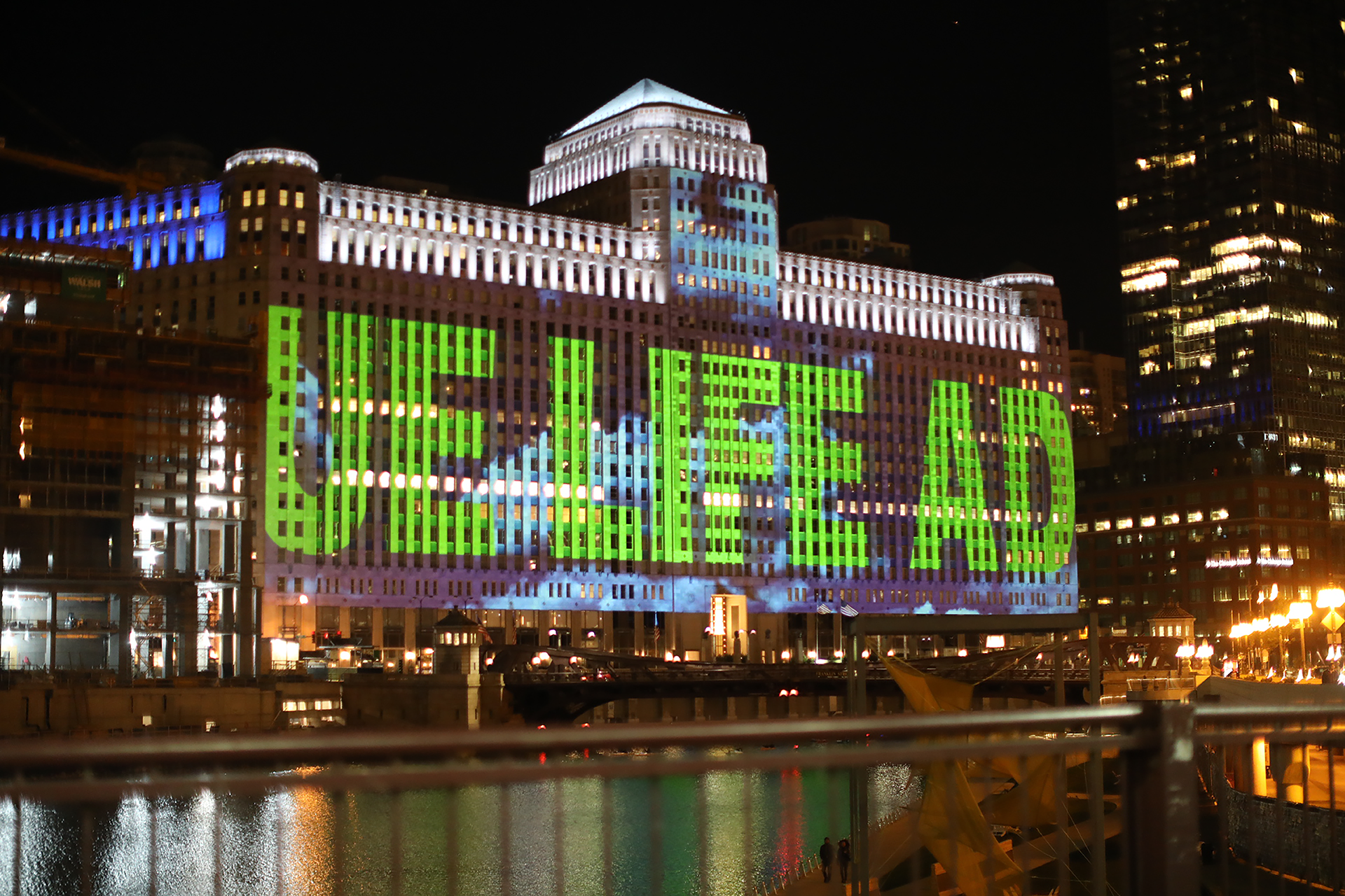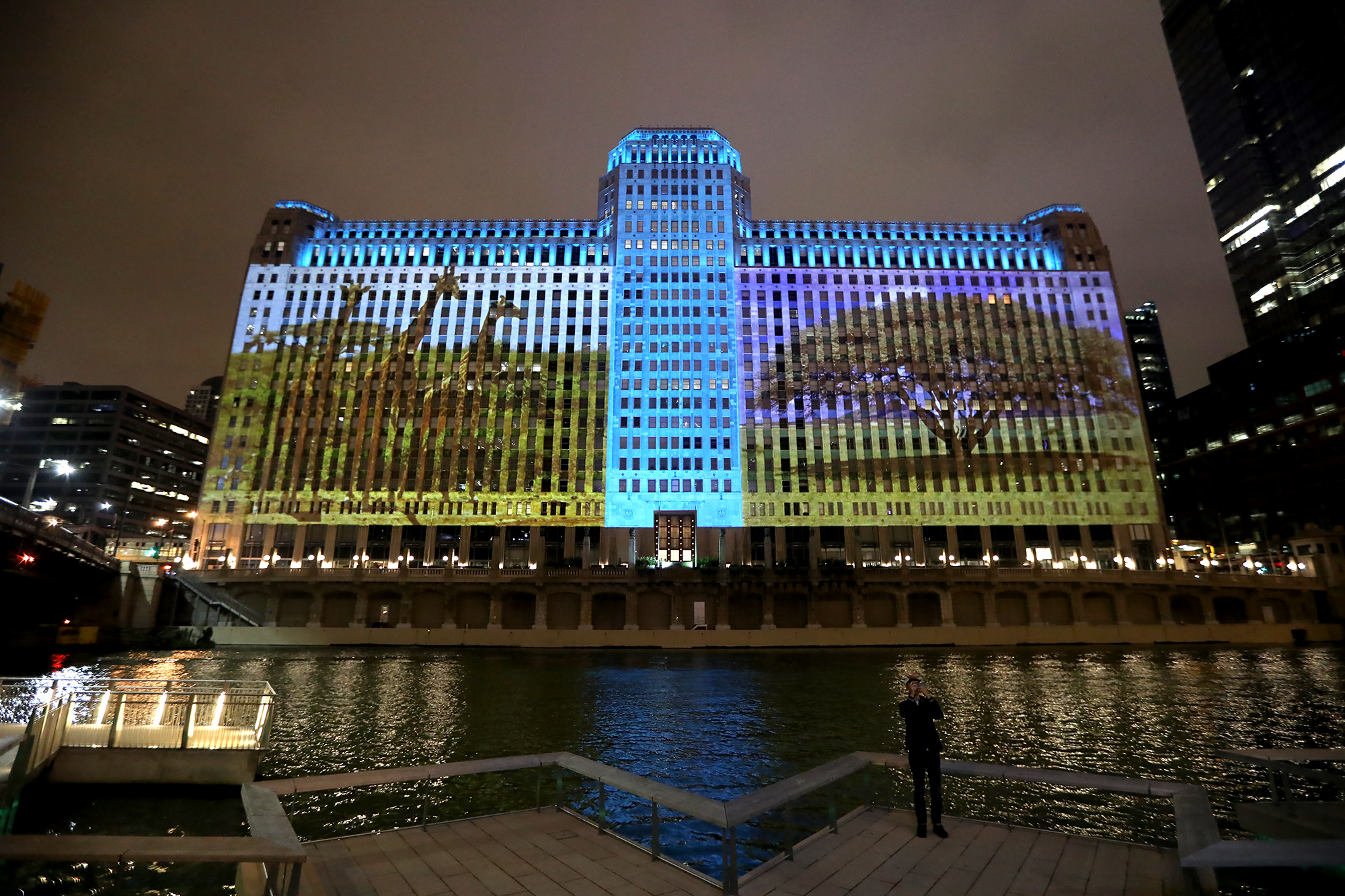 True Life Adventures, 2018Digital video projection on existing architectureInstallation view, Merchandise Mart, Chicago, IllinoisSound by T. Kelly Mason