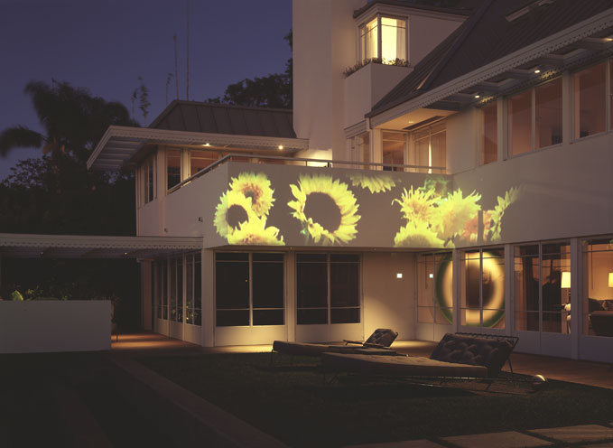 Untitled, Commissioned work for a private residence, 20031 Video projector, 1 DVD, 1 DVD player, Custom designed outdoor projector hangerInstallation view, Brentwood, CA, 2003