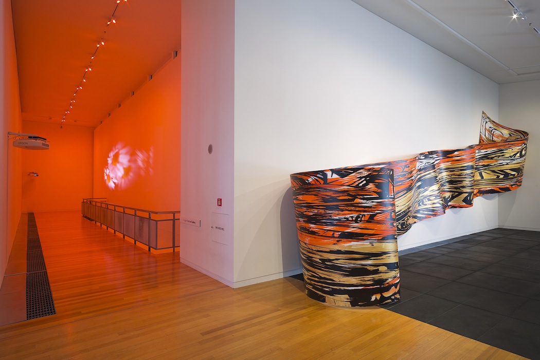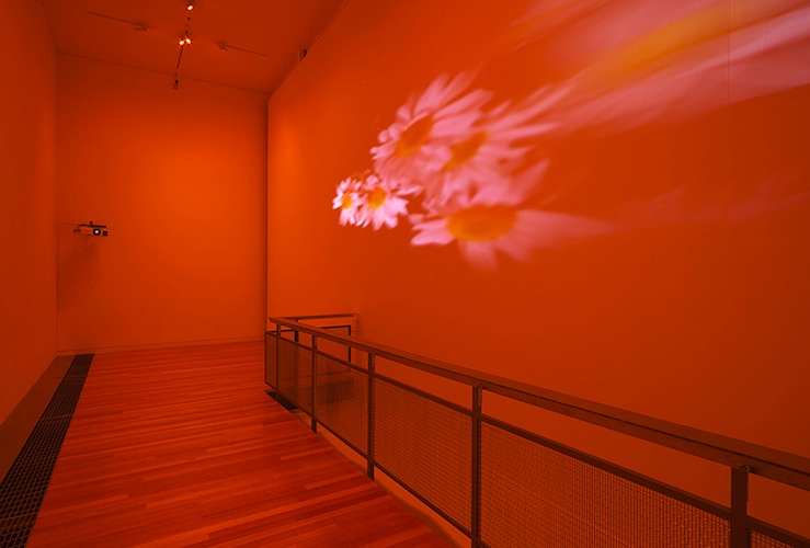 Pink Daisies, Amber Room, 2003 2 Video Projectors, 2 players, Lee Filters, mylar and existing architecture Dimensions variable Installation view, Adam Art Gallery, Wellington, New Zealand, 2014