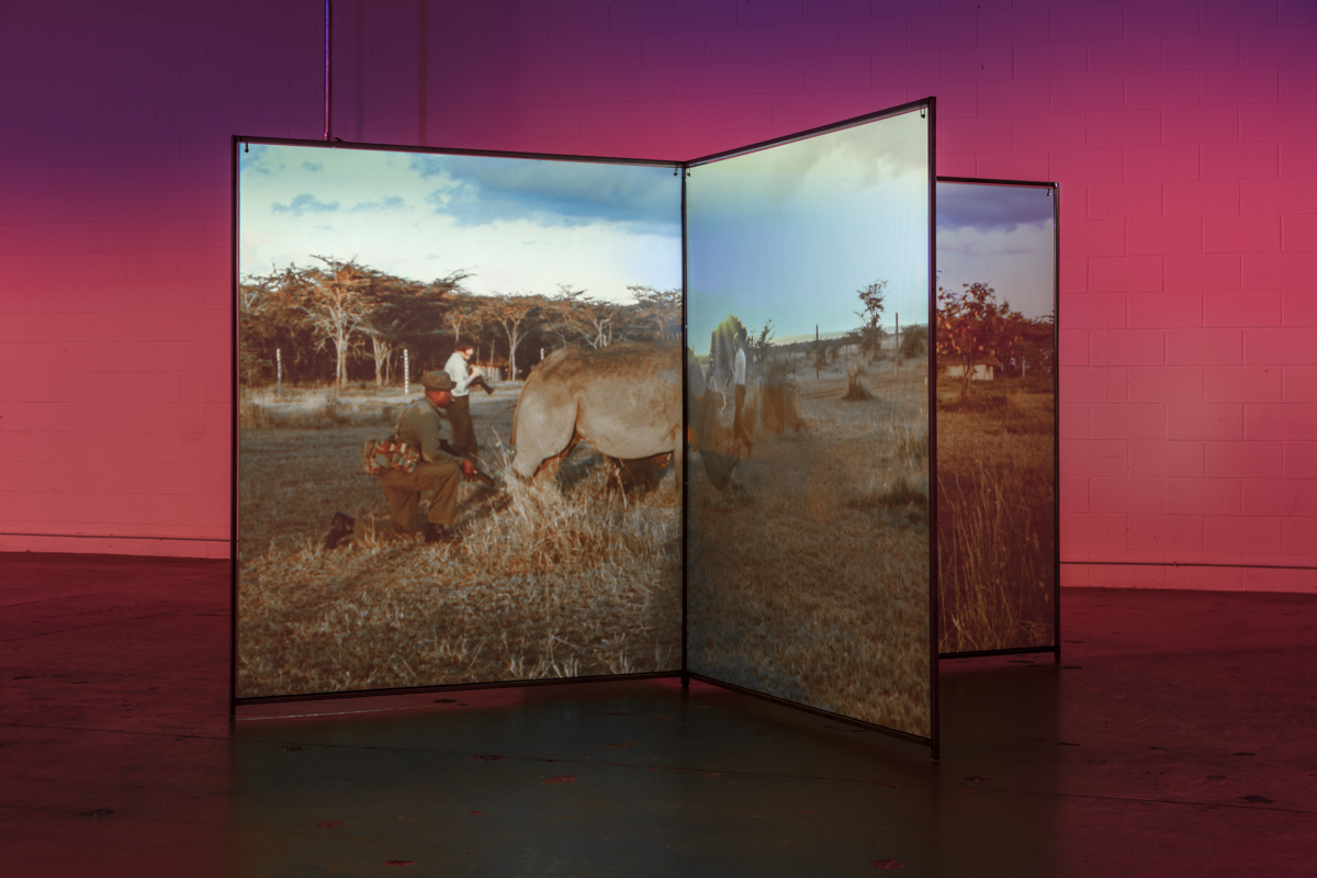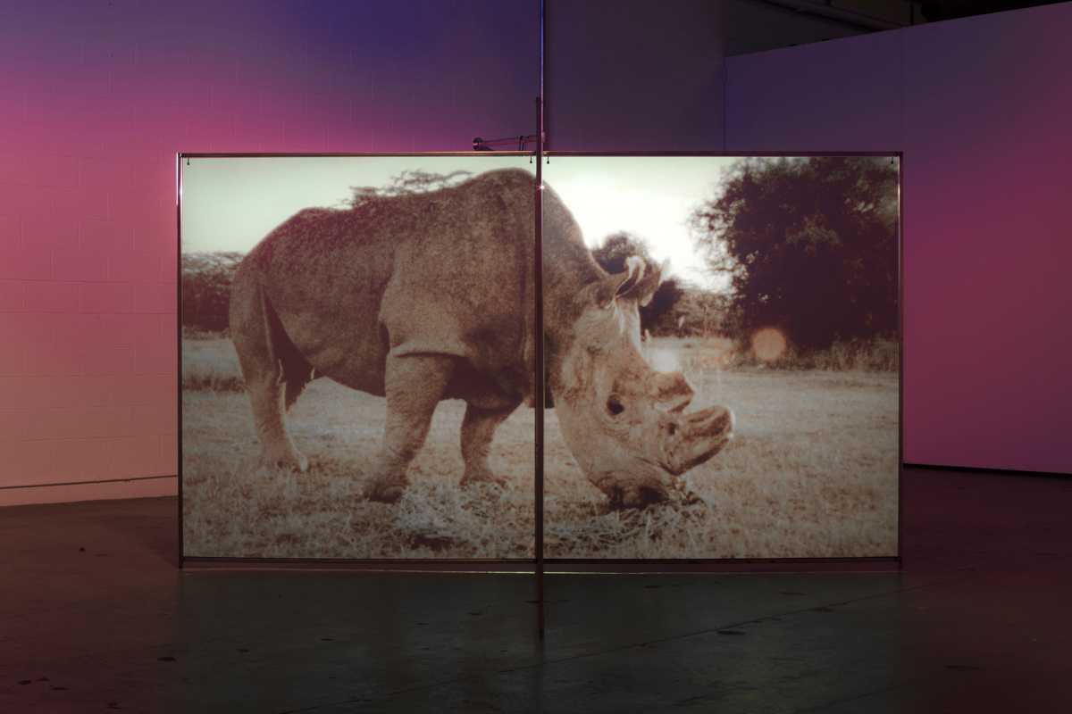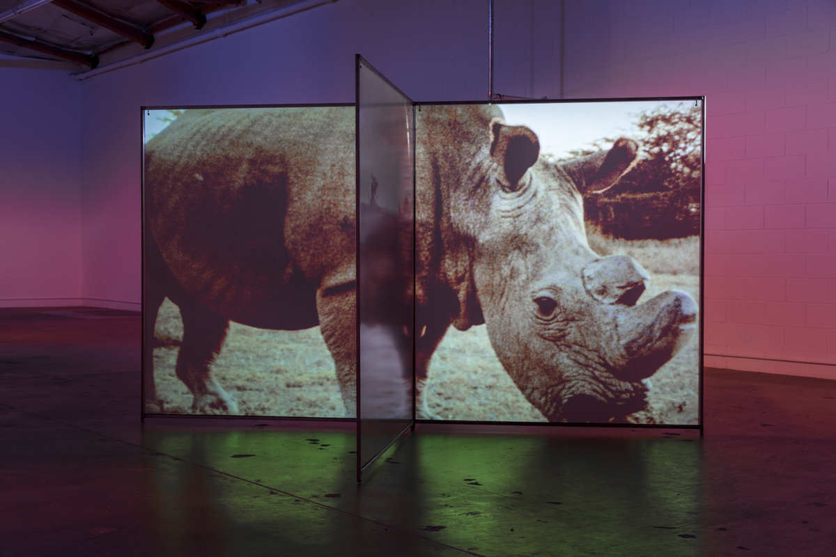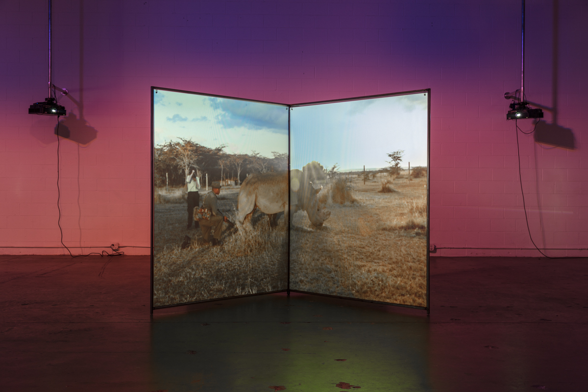 A Runaway World, 2017Two (2) custom screens, two (2) video projectors, two (2) media players Installation view, The Mistake Room, Los Angeles 2017