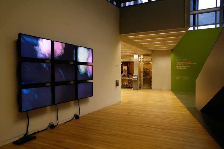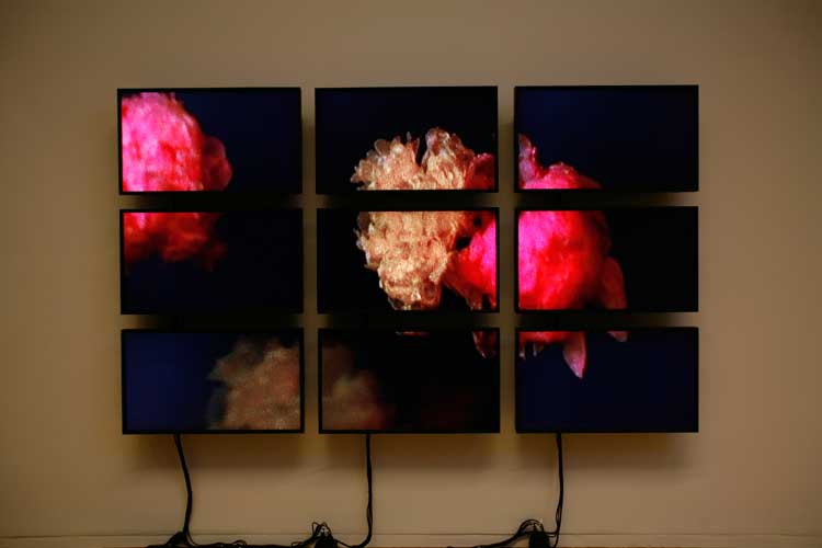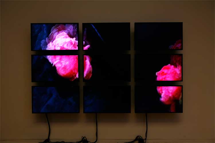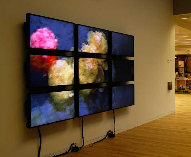 Peonies, 20119 Video monitors, 1 DVD playerDimensions variableInstallation view, Wexner Center for the Arts, Columbus, OH, 2011
