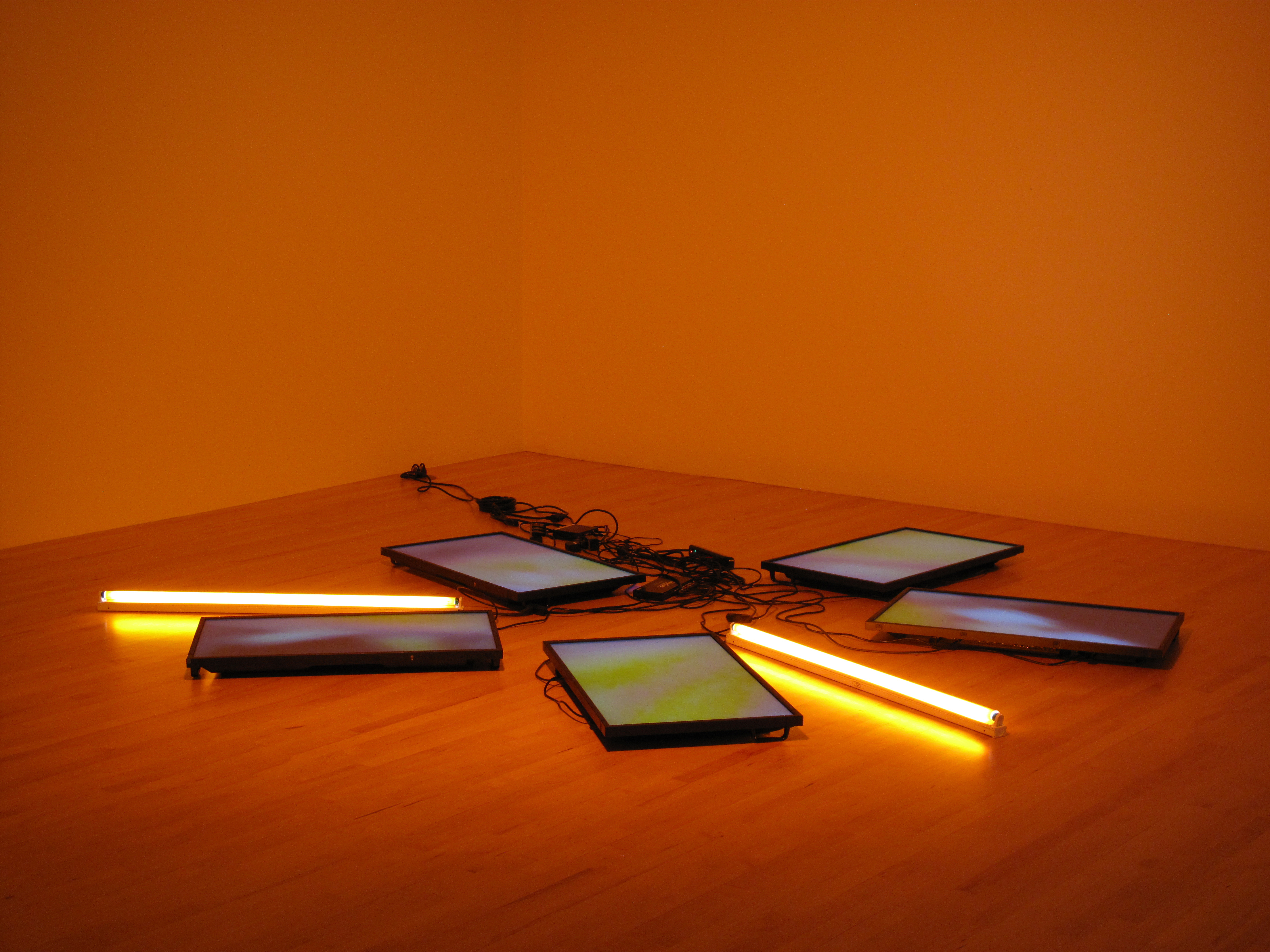 Five (5) flat screen LCD monitors, one (1) blue-ray DVD, one (1) distribution amplifier, two (2) fluorescent light fixtures, Lee filters and existing architecture