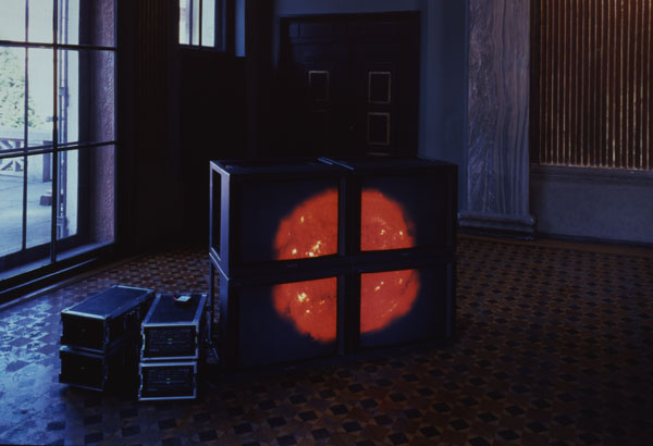 Red Sun Videowall, 2000Four (4) video monitors, four (4) DVDs, four (4) DVD players, one (1) synchronizer Dimensions variable Installation view, Museum Villa Struck, Munich, Germany, 2000