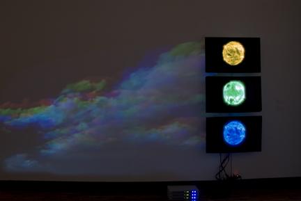 Oculus, 2001 and Blue, Green, Yellow Suns, 2000Installation view, Multiverse, Claremont Museum of Art, Claremont, CA, 2008