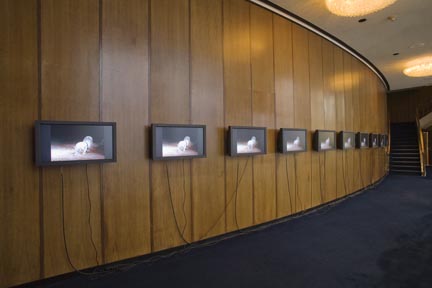 Perfect Devotion Six, 2006 Six (6) flat panel monitors, one (1) DVD, one (1) DVD player and one (1) distribution amplifier Dimensions variable Installation view, Los Angeles County Museum of Art, Los Angeles, 2007