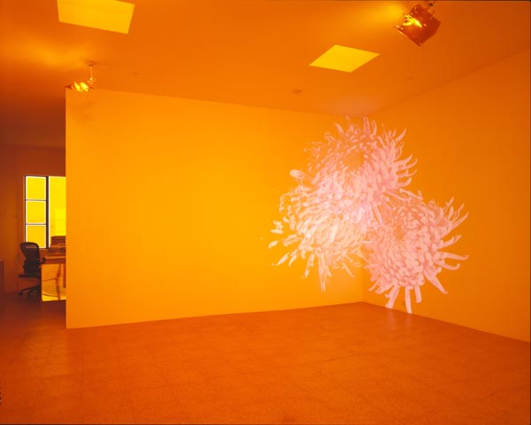 Orange Room (Wallflowers), 2001Three (3) video projectors, three (3) DVD players, three (3) DVDs, Lee filters and existing architectureDimensions variableInstallation view, 1301PE, Los Angeles, CA, 2001