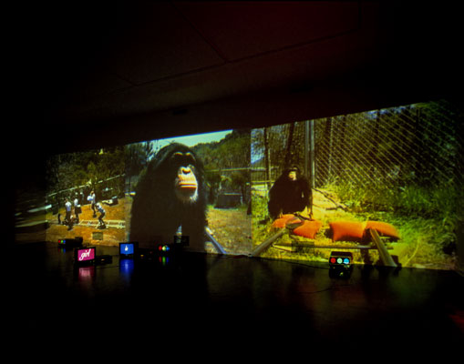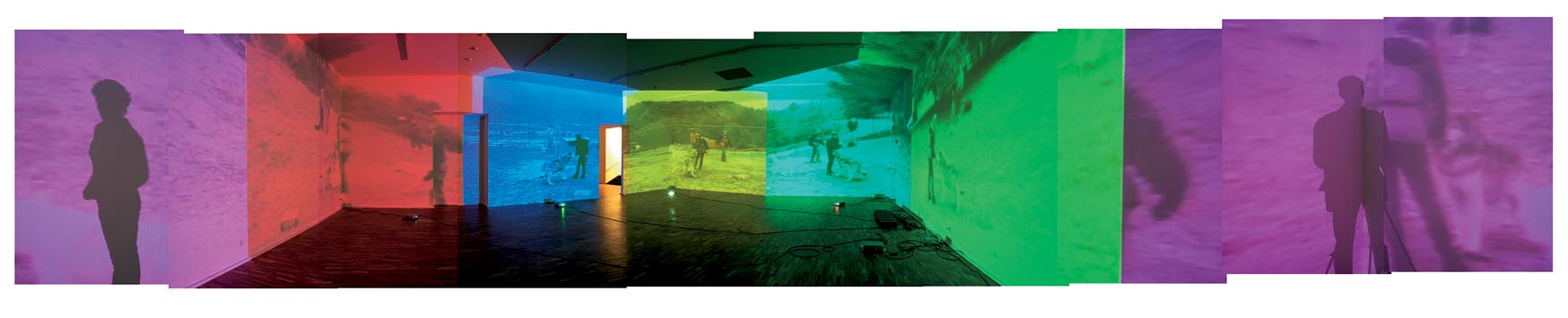 Electric Mind, 1996 6 Video Projectors, 2 Video Monitors, 8 DVD Players, 8 DVDs, 1 Synchronizer, Lee filters and existing architecture Dimensions variable Installation view, Portland Museum of Art, Portland, Oregon, 1996